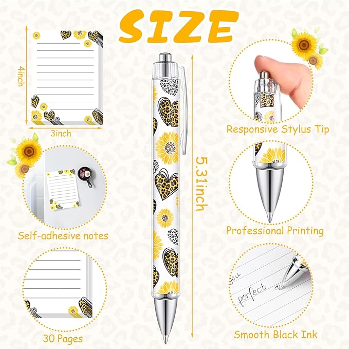 - Convenient Ballpoint Pen: each pen measures roughly 5.31 inches long, fitting in a pencil case, purse, or pocket; 1.00 mm black ink, clear lines, these sunflower pens are designed for comfortable grip and a smooth writing experience