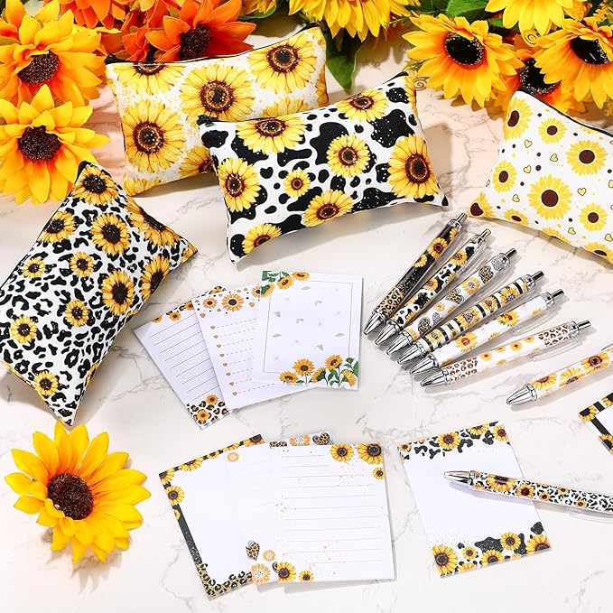 - Package: you will receive 4 sunflower cosmetic bags, 8 sunflower sticky notepads and 8 sunflower pens; The abundant quantity and interesting design can meet your daily use and replacement needs, which you can share with your friends and colleagues