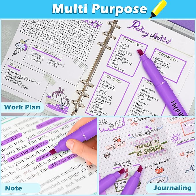 - 30 Fluorescent Purple Highlighter: 30 packs highlighters bulk to help you classify different topics or concepts.Perfect for color coding and highlighting favorite book passages or notes. If you are looking for smooth, pretty, light fluorescent purple highlighters, then these will not disappoint.