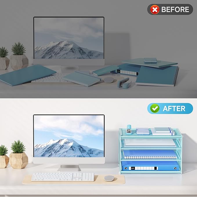 - 1-Minute Assembly Desk Paper Organizer: With our step-by-step visual instructions, simply use the included tool to snap each tier securely into place
