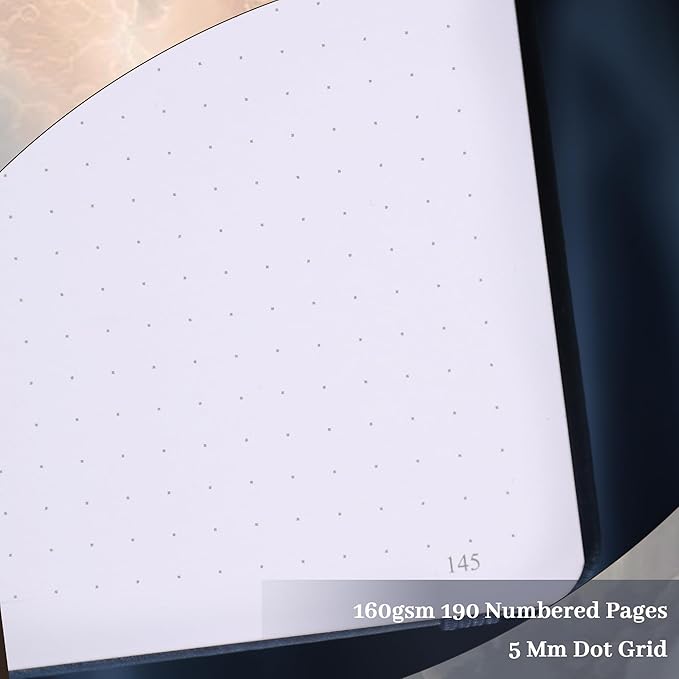 - 5mm Dot Grid: The inner pages adopt a 5mm line spacing dot matrix design with moderate spacing, which makes the text arrangement clear and will not restrict any of your ideas. You can also use it as a bullet dot journal, while leaving enough space for handwritten fonts. It is suitable for Chinese and English writing, handwritten collages, or inspirational shorthand.