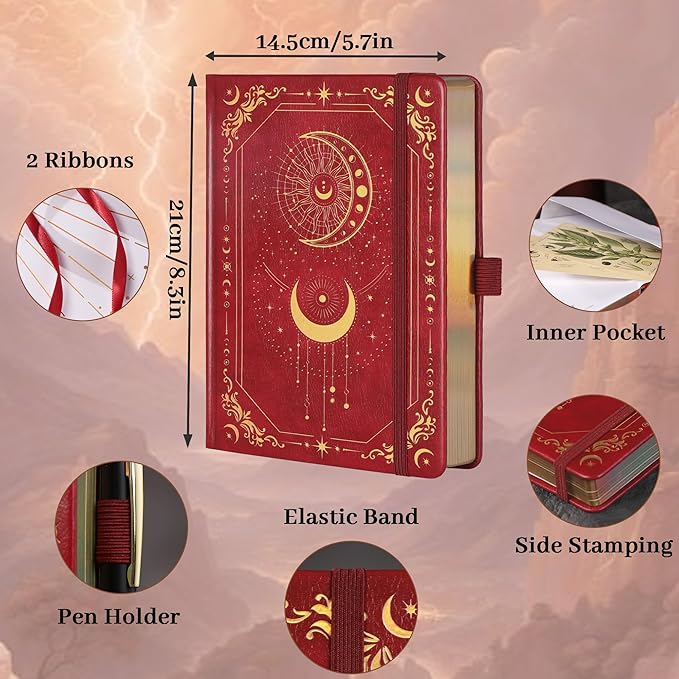 - Multi-use: This journal comes with 2 bookmark ribbons, a back pocket, and a bonus beautiful sun and moon themed bookmark, making it perfect for journaling, note-taking, planning, and creative writing. Whether you are a student, professional, or artist, this journal will meet your daily needs and provide a reliable and beautiful space for all your writing work.