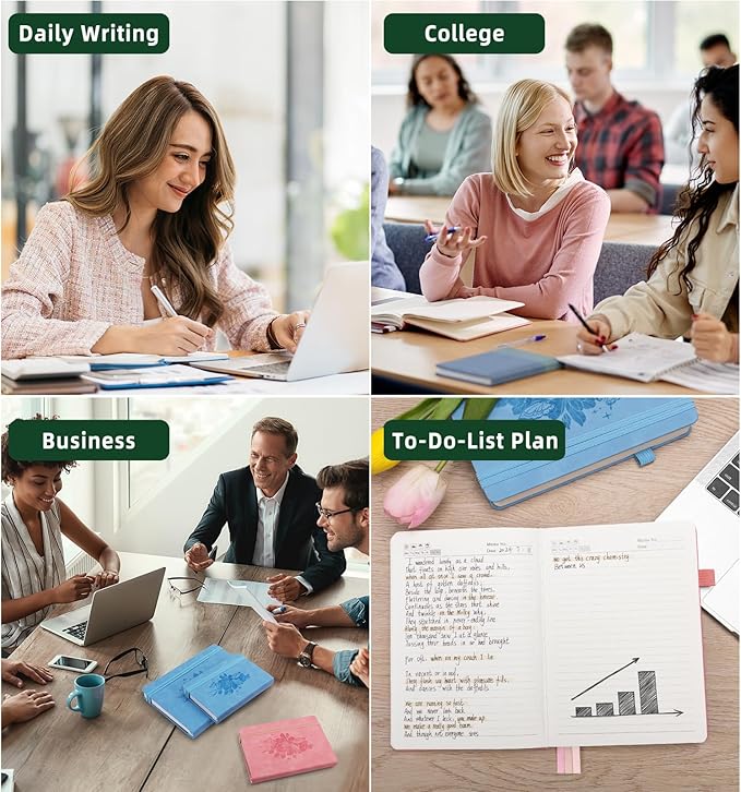 - 【365 Pages&100Gsm Thick Journal】365 pages notebook provides ample writing space. A 7mm space classic college rule notebook features 100gsm acid-free light ivory paper, thicker than regular paper, won't cause bleeding, ghosting, or smudge, and is suitable for most pens.