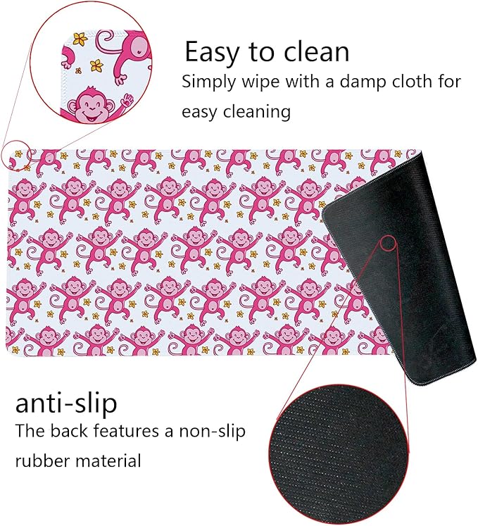 - 【Stylish appearance Designs】We choose the cute and fashionable pink monkey pattern, and use excellent printing technology to ensure bright colors. This is a great decoration for your Home office desk and dorm table mat, which can add some personality to your workplace and home.