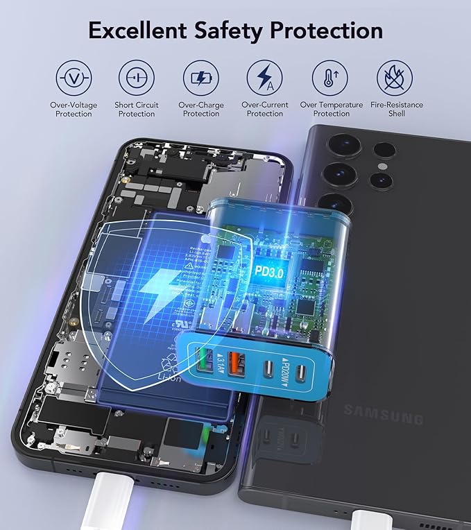- Universal Compatibility:Due to the special 4-port,the USB charger is compatible with almost all electronic devices,charging adapter for iPhone 17/17 Pro/17 Pro Max/17 Air/16/16 Pro/16 Pro Max/16 Plus/15/15 Pro /15 Pro Max/14/14 Pro/14 Pro Max/13/13 Mini/13 Pro Max/12/12 Pro Max/12 Pro Max/12 Mini/SE 2020/11/11 Pro/11 Pro Max/XR/XS/X/8/7/Pro/Mini,Samsung Galaxy S23/S22/S21/S20/S10/S9/S8/A12/A13/A22/A32/A52/A53/A71/Note 20 10,Tablets,LG,Motorola,Google Pixel and other digital devices compatible