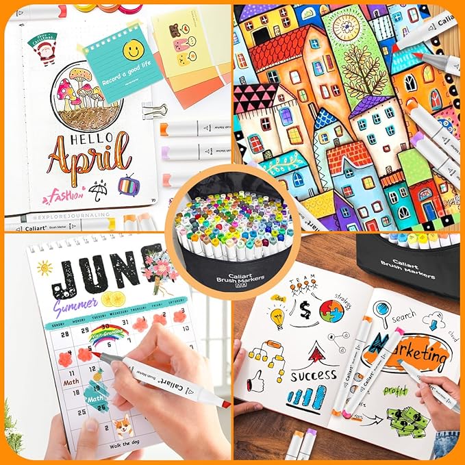 Caliart 180 Colors Alcohol Markers Brush Tip, Dual Tip Artists Coloring Markers Set Brush & Fine, Permanent Alcohol Based Colored Sketch Pens, Art Supplies Gifts for Adults Illustration Drawing