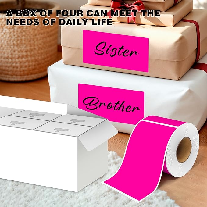3x5 Inch Home Moving Labels 4 Rolls 1000 Stickers, Large Packing Box Labels Rectangular Colored Inventory Stickers for Moving Supplies Color Coded (Fluorescent Pink)