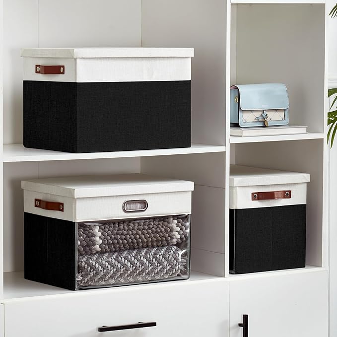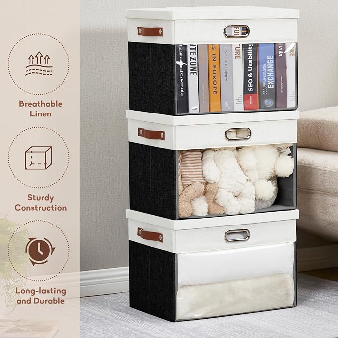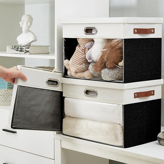 - Excellent Quality: Clear window storage bin is made of high quality linen, soft, breathable and odorless. PVC clear window—no more rummaging through stacks to find what you need! In addition the storage organizer is paired with reinforced thick cardboard, not easy to tear and deform, durable, for your long-term storage needs. The storage basket with lid protects against dust, keeping your items neat and clean.