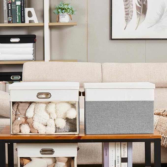 - Excellent Quality: Clear window storage bin is made of high quality linen, soft, breathable and odorless. PVC clear window—no more rummaging through stacks to find what you need! In addition the storage organizer is paired with reinforced thick cardboard, not easy to tear and deform, durable, for your long-term storage needs. The storage basket with lid protects against dust, keeping your items neat and clean.