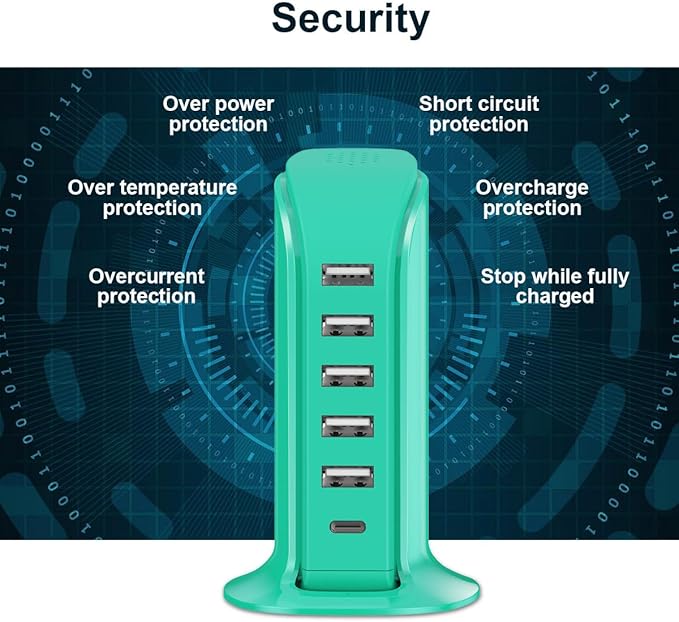 - 6 in 1 USB Charger Block: Support 6 devices simultaneously, quick charger up to 2.4A for single USB port.