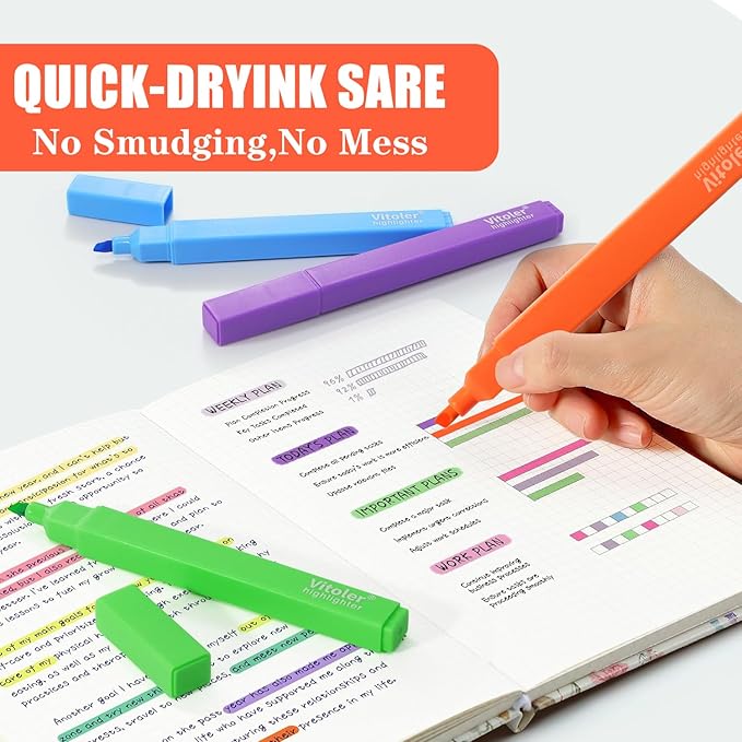 - Multi- Applications:The highlighters package is a great choice for school supplies or office supplies,also suitable for college, home, office, even travel diary, schedule, work, study, notes, etc. These aesthetic highlighters are also wonderful gifts for teachers, classmates, bosses, coworkers and so on