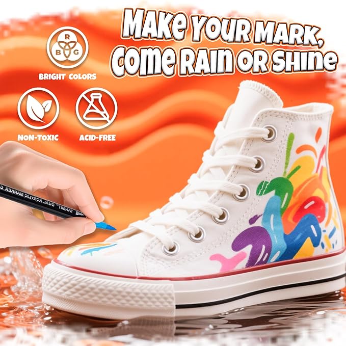 - INNOVATIVE INK TECHNOLOGY No shaking or prep needed—these advanced acrylic markers are ready to use right out of the cap. They feature upgraded water-based ink that’s washable, odorless, waterproof, and non-toxic. Enjoy smooth application and rich, opaque coverage with every stroke. The vibrant, long-lasting colors remain true over time. Tip: Always recap after use to preserve performance.
