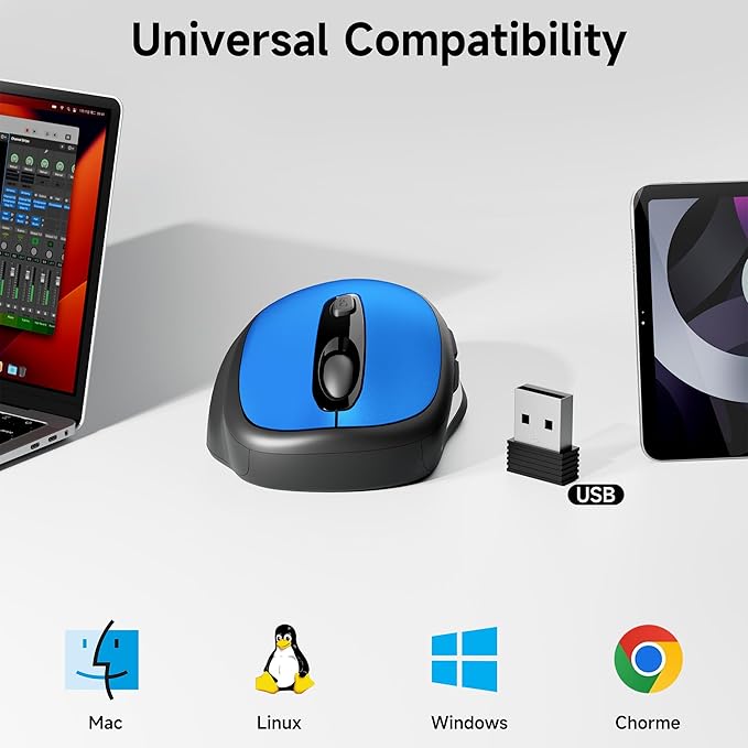 - ▶️ 3 Adjustable DPI Levels for Precision Control:Enjoy seamless switching between 800/1200/1600 DPI for graphic design, gaming, or everyday tasks. The high-precision optical engine ensures accurate tracking on any surface, making this wireless mouse perfect for PC, Mac, and laptop users.