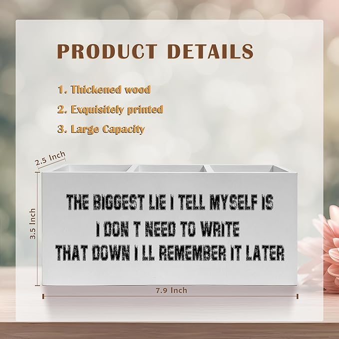 Funny Pencil Pen Holder for Desk, Retro Humorous Wooden Pencil Holder Organizer for Home Office Desk Accessories, Funny Office Gifts for Coworkers Women Men