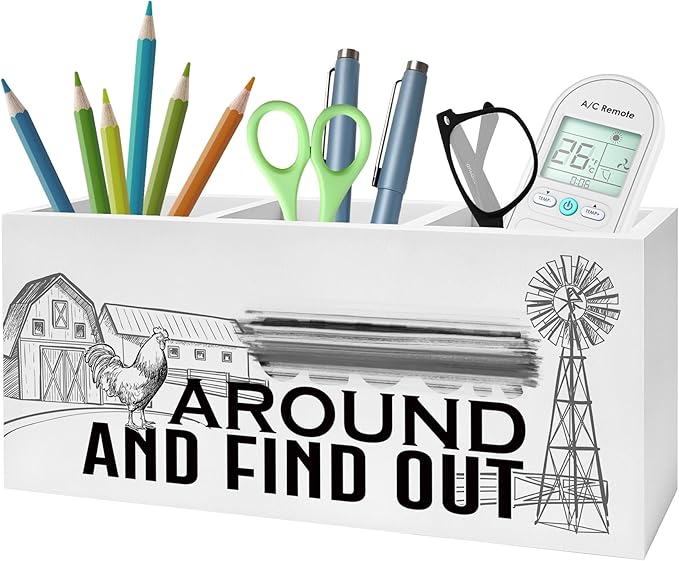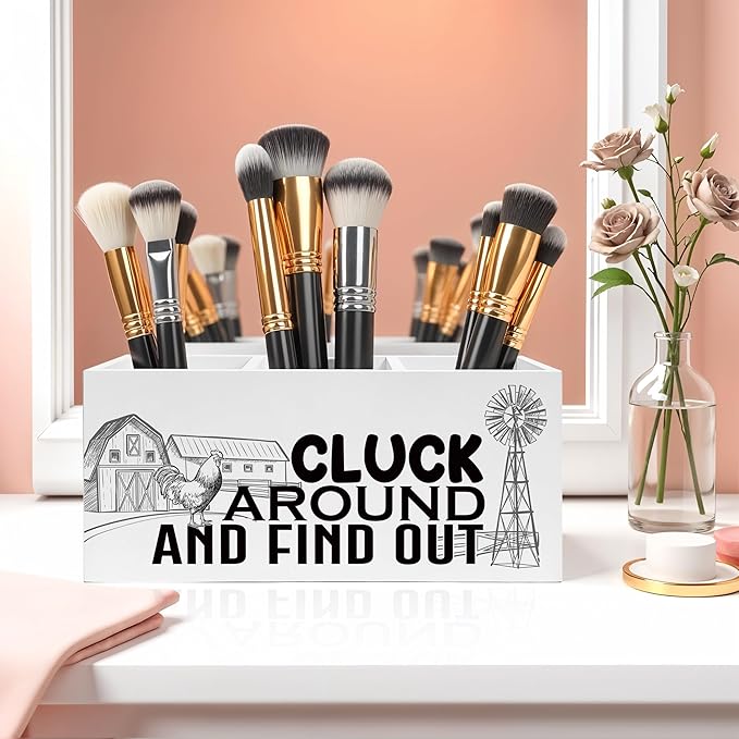 Funny Chicken Pencil Pen Holder for Desk, Chicken Lover Farmer Gifts, Farmhouse Rustic Rooster Hen Wooden Desk Sign, Farm Animal Decor Pencil Organizer for Home Office Accessories
