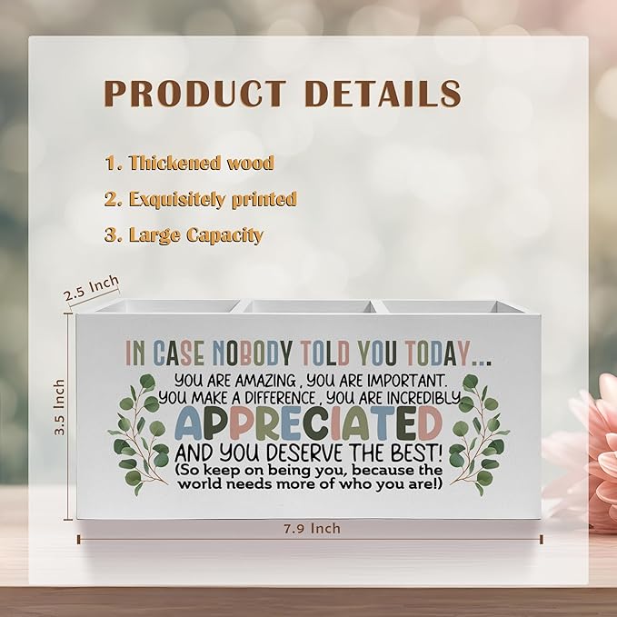 Boho Inspirational Pencil Pen Holder for Desk, Appreciation Gifts for Coworkers, Boss Gifts for Women Men Wooden Pencil Holder Organizer for Home Office Desk Accessories