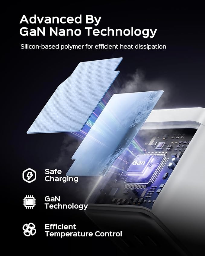 - GaN III CoolTech Advantage and Certified Safety: 40% cooler than traditional chargers thanks to next-gen Gallium Nitride III and thermal safeguards,stays at 113°F max during 100W output (safe touch-range). ETL/CSA/UL-certified with high-grade protection Support 100x/sec voltage/current monitoring, Short-circuit/overload auto-shutdown, Flame-retardant casing