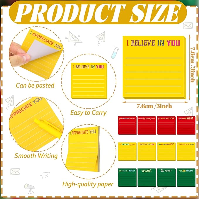- Classic Christmas Design: Christmas Notepads with inspirational quotes on classic Christmas colors: red, yellow, green with memo notepad including [so proud of you], [you are awesome], [I appreciate you], [I believe in you], [you make a difference] and so on, each mini sticky notes are printed with words of positivity and encouragement to encourage us maintain a positive and optimistic attitude towards life