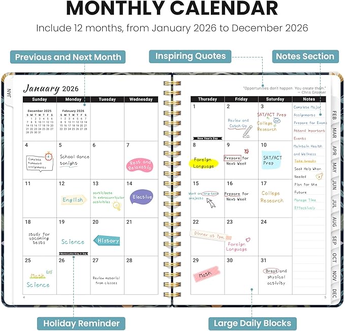 - Versatile for All: Perfect for students, teachers, professionals, and homemakers alike, this 2026 planner meets the diverse needs of any busy individual. Use it to manage school assignments, work projects, family events, and personal goals—all in one convenient place.