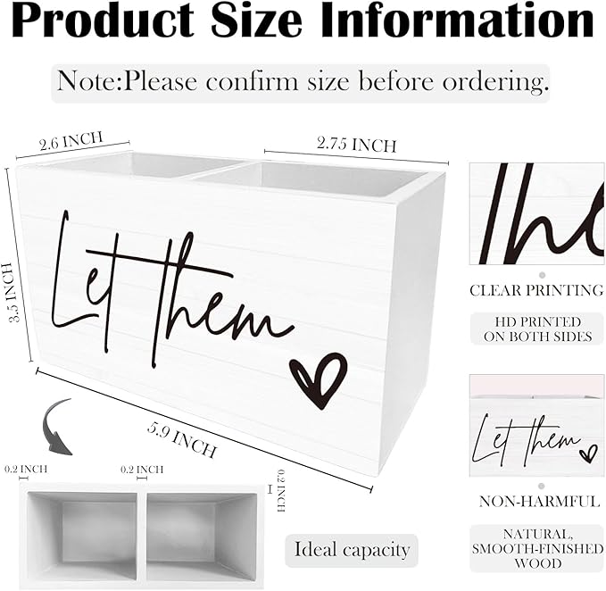 Let Them Inspirational Pen Holder for Desk, Motivational Wooden Box Sign Desk Decor for Home Office Decoration, Positive Affirmation Pencil Organizer, Mental Health Office Decor