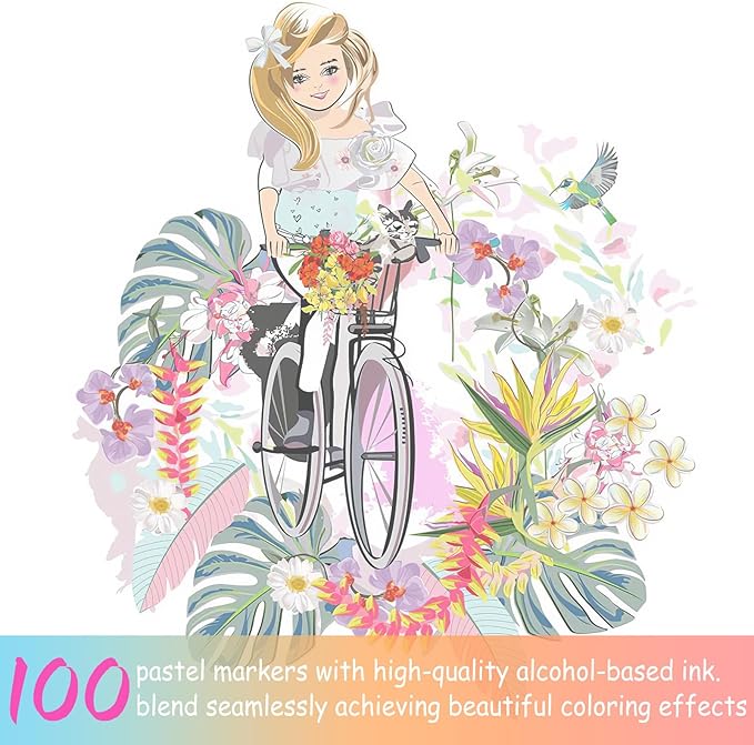 Caliart Pastel Markers, 100 Colors Dual Tip Art Markers Sketch Pens Permanent Alcohol Based, with Case for Adults Artists Drawing Illustration Sketching Coloring