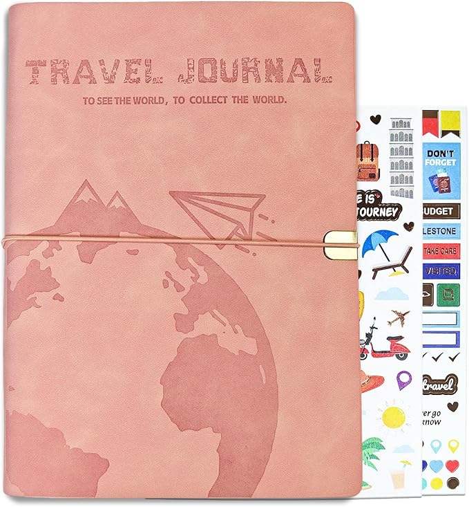 GoShambar Travel Journal for Women Men, Leather Travel Scrapbook Notebook & Adventure Book Travel Planner Memory Diary, Travel Gifts (Pink)