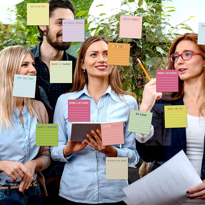 - Inspirational Lined Design: inspirational notepad with lined designed with inspirational quotes on colorful memo notepad including [BELIEVE IN YOURSELF], [GO FOR IT], [LIFE IS SWEET], [YOU GOT THIS], [LET'S DO THIS], [MAKING A DIFFERENCE], [BE KIND], [NEVER GIVE UP], [DO GREAT THINGS] and so on, each mini sticky notes are printed with words of positivity and encouragement to encourage us maintain a positive and optimistic attitude towards life