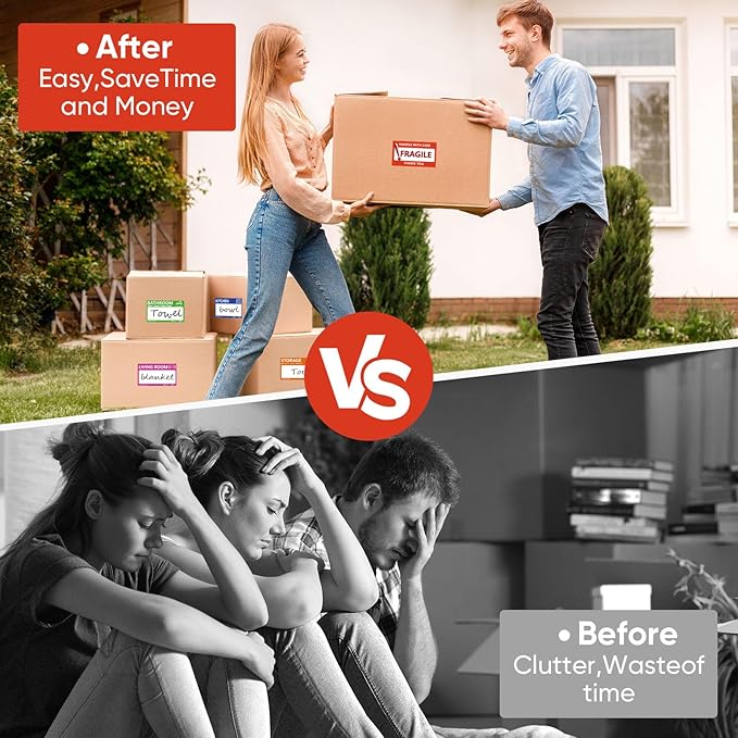 - Wide Applications: The packing labels for moving boxes can stick well to the moving boxes, storage boxes and moving supplies.Each colored labels stickers is placed separately on the same page, so you don't waste a lot of time sorting through stickers.