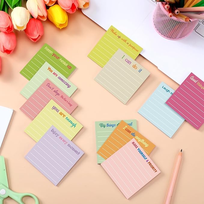 - Inspirational Lined Design: inspirational notepad with lined designed with inspirational quotes on colorful memo notepad, each mini sticky notes are printed with words of positivity and encouragement to encourage us maintain a positive and optimistic attitude towards life
