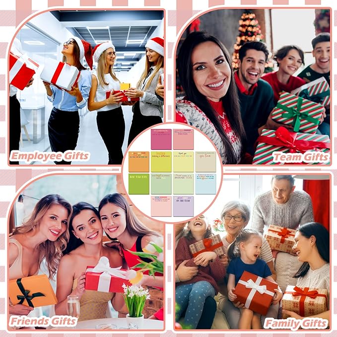 - Quality Material: appreciation sticky notes are designed with self adhesive, strong adhesion, and can be easily pasted on many smooth and clean surfaces, such as books, doors and windows, refrigerators, cabinets, desks, drawing boards, etc.; Moreover, they will not leave behind after removal any sticky residue, odorless and smooth, easy to peel and stick, good adhesion, not easy to remove, bring convenience to your daily work and study, or Christmas sticky notes gift