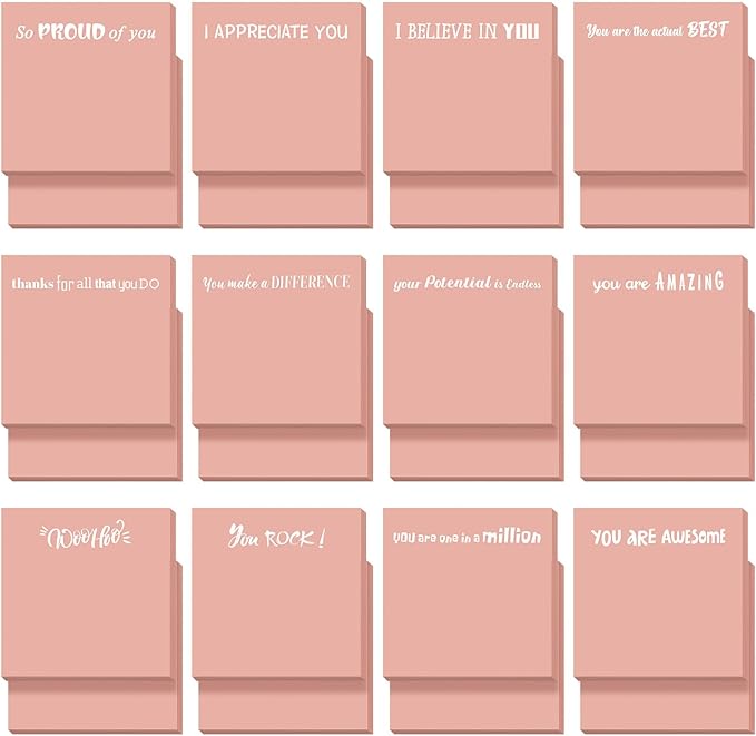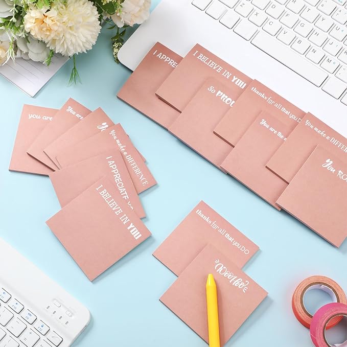 Yinder 24 Pcs Inspirational Sticky Notes Christmas Stocking Stuffers Motivational Sticky Notes Pad Employee Appreciation Gift Bulk for Teacher Nurse Coworker Office 3 x 3'' (Motivational,Pink)