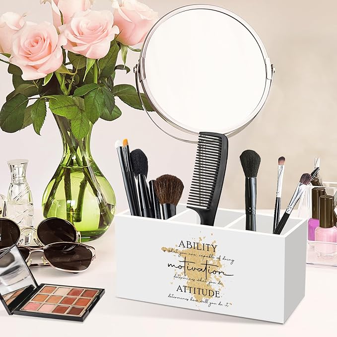 - Three Separate Compartments: Keep your items organized with three spacious sections, perfect for makeup brushes, pens, office supplies, remote controls, or other small accessories. Everything stays tidy, accessible, and easy to find.