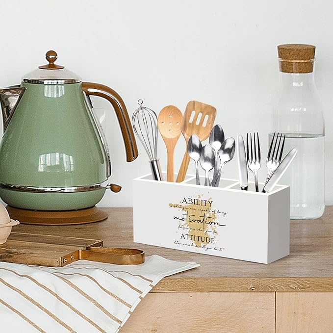 Gold Office Inspirational Pen Pencil Holder for Desk, Ability Motivation Attitude Office Desk Accessories, Motivational Pen Holders Organizer for Home Classroom Bathroom