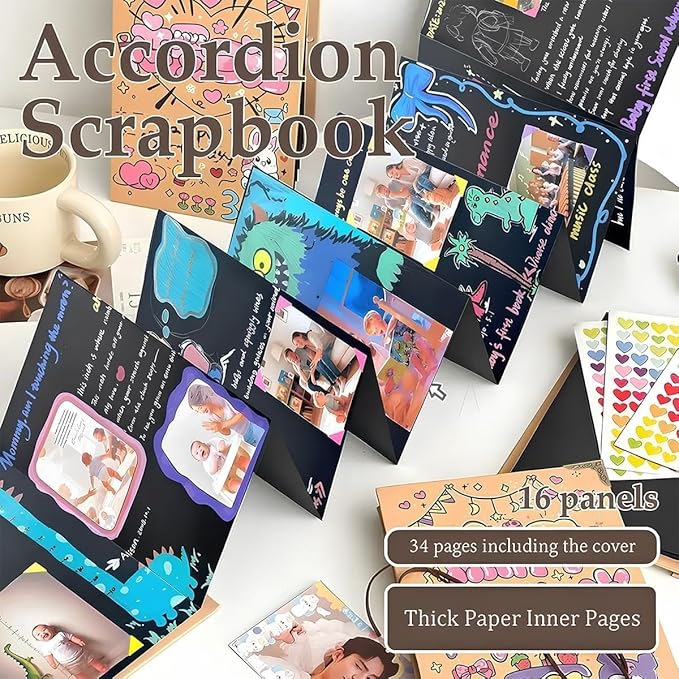 - Versatile Accordion Design for Endless Possibilities: This unique accordion scrapbook provides ample space to display photos, notes, and keepsakes. Its durable construction ensures that your memories—from birthday celebrations to travel adventures—are perfectly preserved, while the interactive design adds a tactile element to your journaling experience