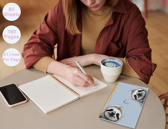 Sloth Notebook Journal,Blue Cute Animal Notebook Journal for School Women Teen Girls Kids,Gifts for Sloth Lovers,Hardcover Spiral Notebooks for Work Notes Journaling,5.5x8.3 Inch